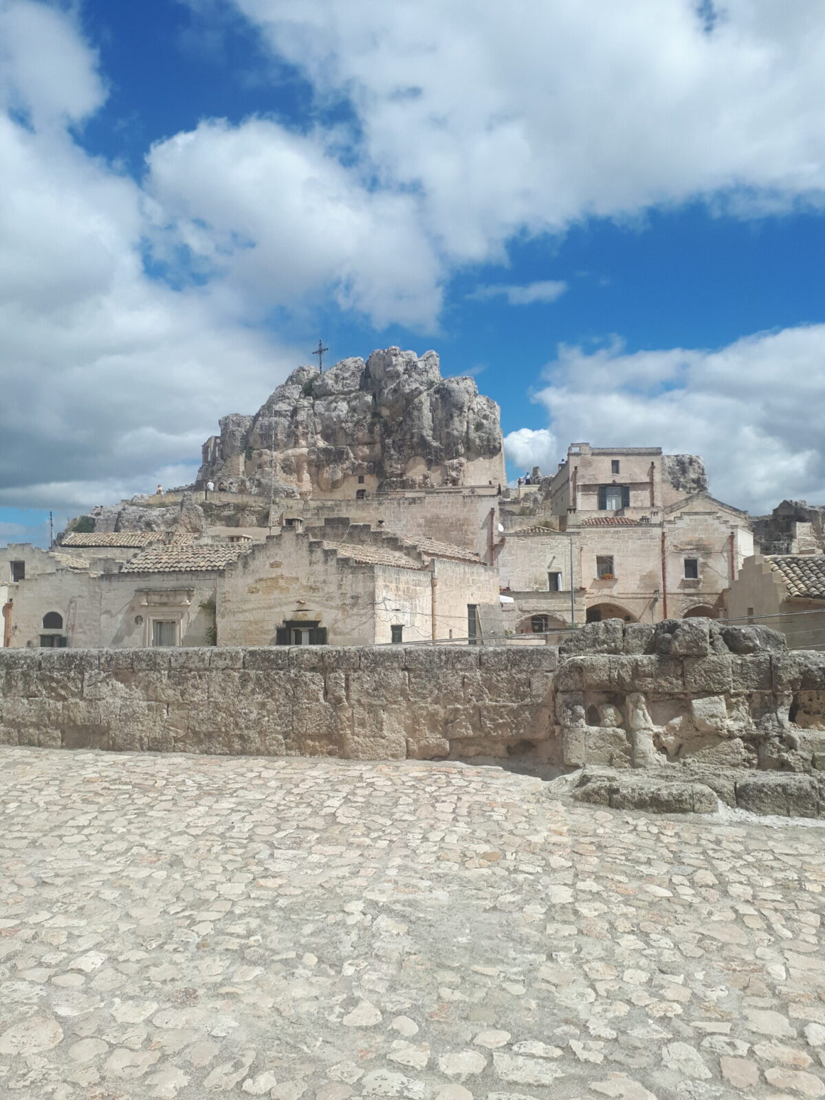 The church, connected by a corridor to the rock church of San Giovanni in Monterrone, appears to be half-built, following the collapse of the façade in the 15th century. A small bell tower gives the rock complex a harmonious appearance. Its name derives from the Greek term Odigitria, which means she who shows the way, which by corruption became de Idris. It is commonly called the litre, since the Virgin, in a seventeenth-century tempera painting, is represented sitting with two half-liters (terracotta amphorae of half a liter each) called rezzolelle at her feet. This painting is located in the center, above the nineteenth-century altar, surmounted, in turn, by a representation of God the Father. To the left of the altar there are the paintings of San Michele Arcangelo and the Madonna, while, on the right, there is the scene of the Conversion of Sant’Eustachio, patron saint of Matera, and a Nativity. Recognizable by the lily, it follows the painting of Saint Anthony of Padua. In the chapel located to the right of the entrance, immediately after a cistern, a Crucifixion is painted. These paintings date back to the Baroque period. The iron cross, four meters high and placed at the top of the rocky spur, was built in 1937 in memory of the Pauline Missions of that year.