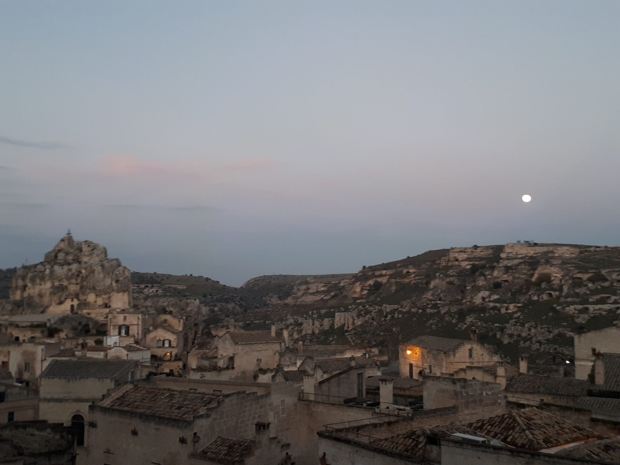 This walk combines the historical, artistic and landscape peculiarities of the old center of Matera with the special and, why not, romantic atmosphere, which only twilight can add to the intrinsic beauty of the city. Many people ask me whether Matera is more beautiful to visit during the day or by night. Well, it’s not easy to answer, since every light and weather condition offers different colors and shades, all enjoyable, fog included! And so I reply that Matera is always beautiful, depending on your taste, just as a brunette, or redhead, or blonde lady can be!